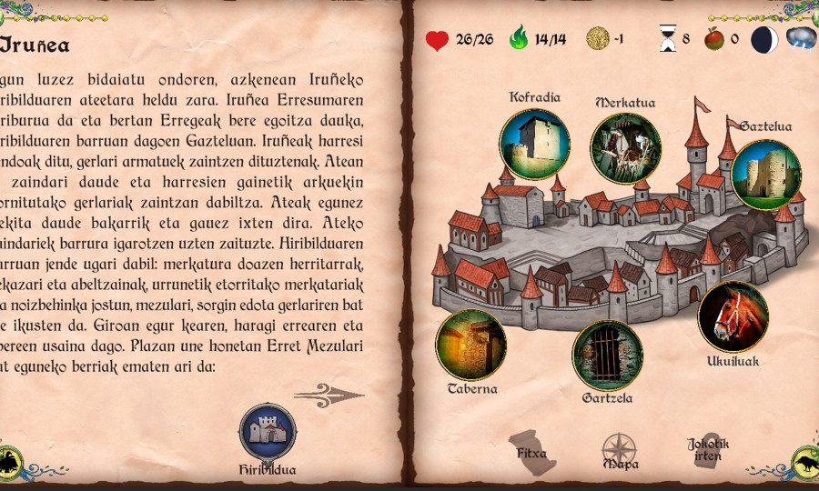 Jokoaren mundua Euskal herri osoan zabaltzen da, Iruñeko erresumaren barne eta haratago. Mapa handi bat eskaintzen du jokoak, 200 leku beino gehiagorekin eta ia beste hainbeste erronkekin. Joko barruan istorio bat garatzen da, bi zatitan banatuta dagoena. Lehenengo zatian pertsonaia heroi bihurtzeko ibilbidea jarraituko du, eta bigarren zatian heroiak euskal erresumaren babesean hainbat abentura biziko ditu.