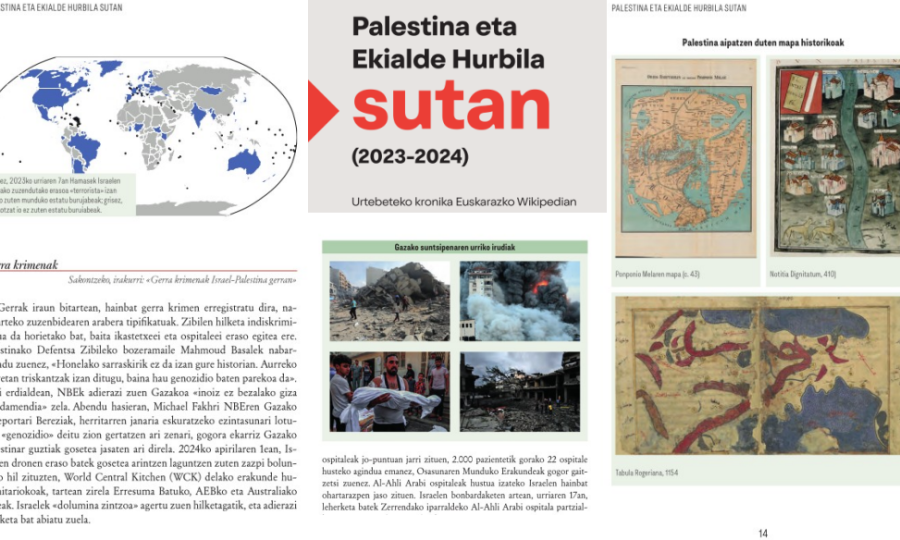 Urtebeteko kronika Euskarazko Wikipedian: Gazako genozidioaz eta Ekialde Hurbilean Israelek egindako erasoez euskal wikilariek ondutako artikuluak paperean argitaratu nahi ditugu zure laguntzarekin.